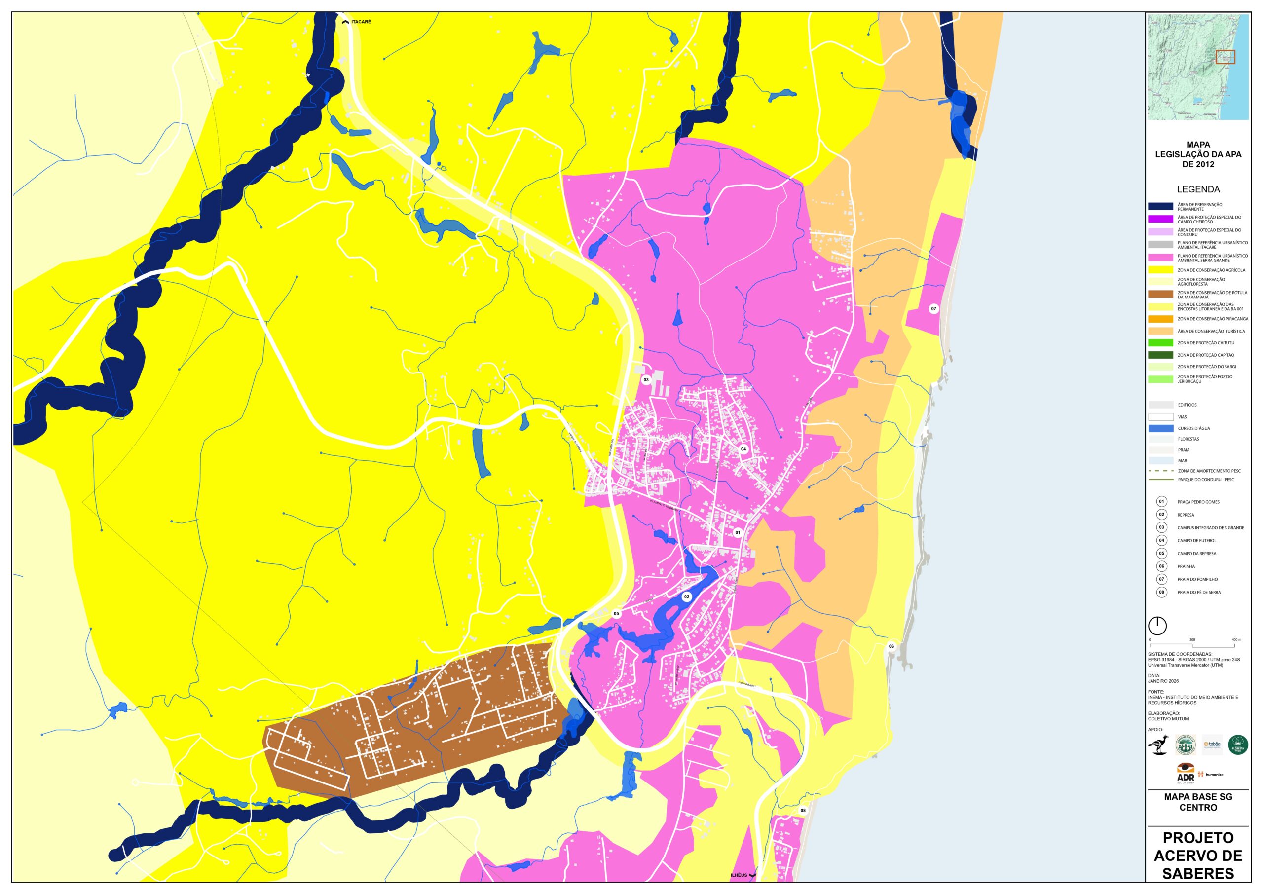 No recorte territorial de Serra Grande, aparecem principalmente as zonas APP, ZC1, ZC2, ZC3, ZC4, ZC5 e ZUE, cada uma com funções ambientais e regras próprias. As Áreas de Preservação Permanente (APP) correspondem a trechos de rios, nascentes, margens, encostas, brejos litorâneos e manguezais, cuja função é garantir a integridade ecológica desses ecossistemas. Nessas áreas, apenas atividades de visitação contemplativa, educação ambiental, pesquisa científica licenciada e recomposição vegetal são permitidas. São toleradas pesca controlada, atividades turísticas de baixo impacto e pequenos atracadouros em áreas degradadas. Contudo, é proibida qualquer supressão da vegetação nativa, modificação do ambiente natural, obras de médio e alto impacto, piscicultura, moradias ou construções (exceto apoio turístico autorizado), deposição de resíduos e introdução de espécies exóticas.