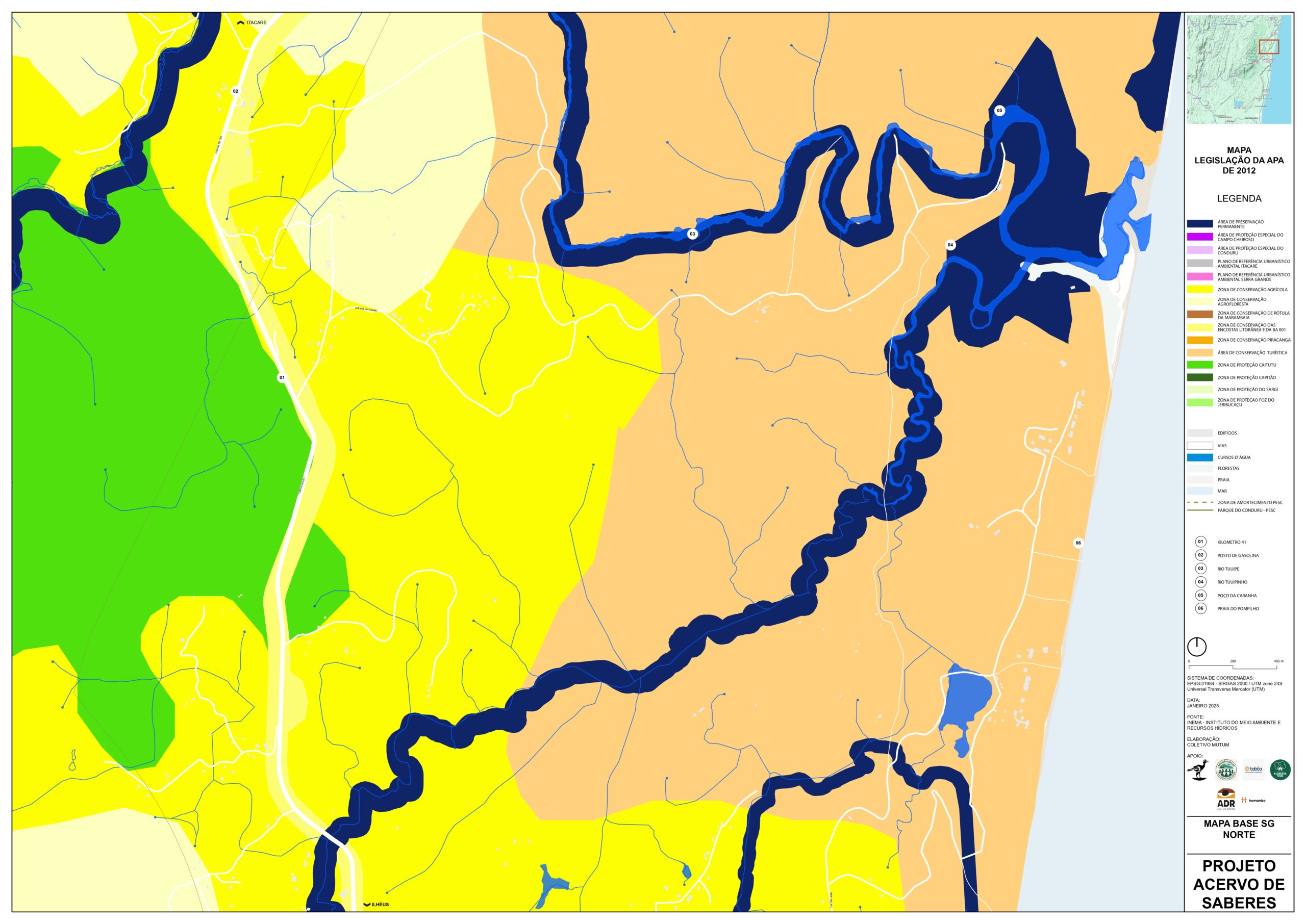 Apesar do pequeno equívoco cartográfico que exclui a foz do rio Sargi bem como seu brejo litorâneo, o decreto de criação da APA Nº 2186 DE 07 DE JUNHO DE 1993 define o Rio Sargi como limite.