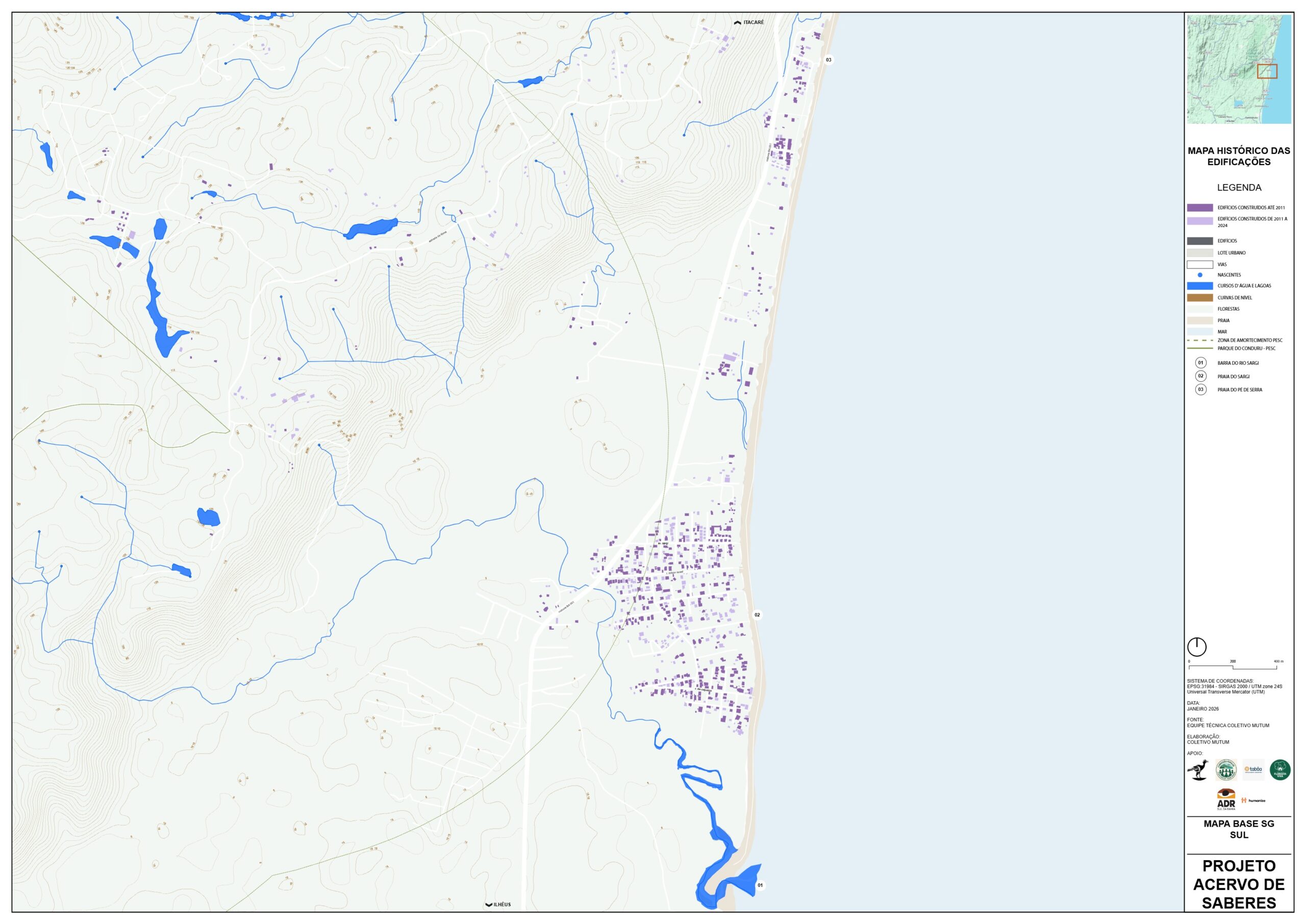 As cartografias dividem o distrito em 3 arquivos complementares – Sul, Centro e Norte – no intuito de manter a escala 1:5000.