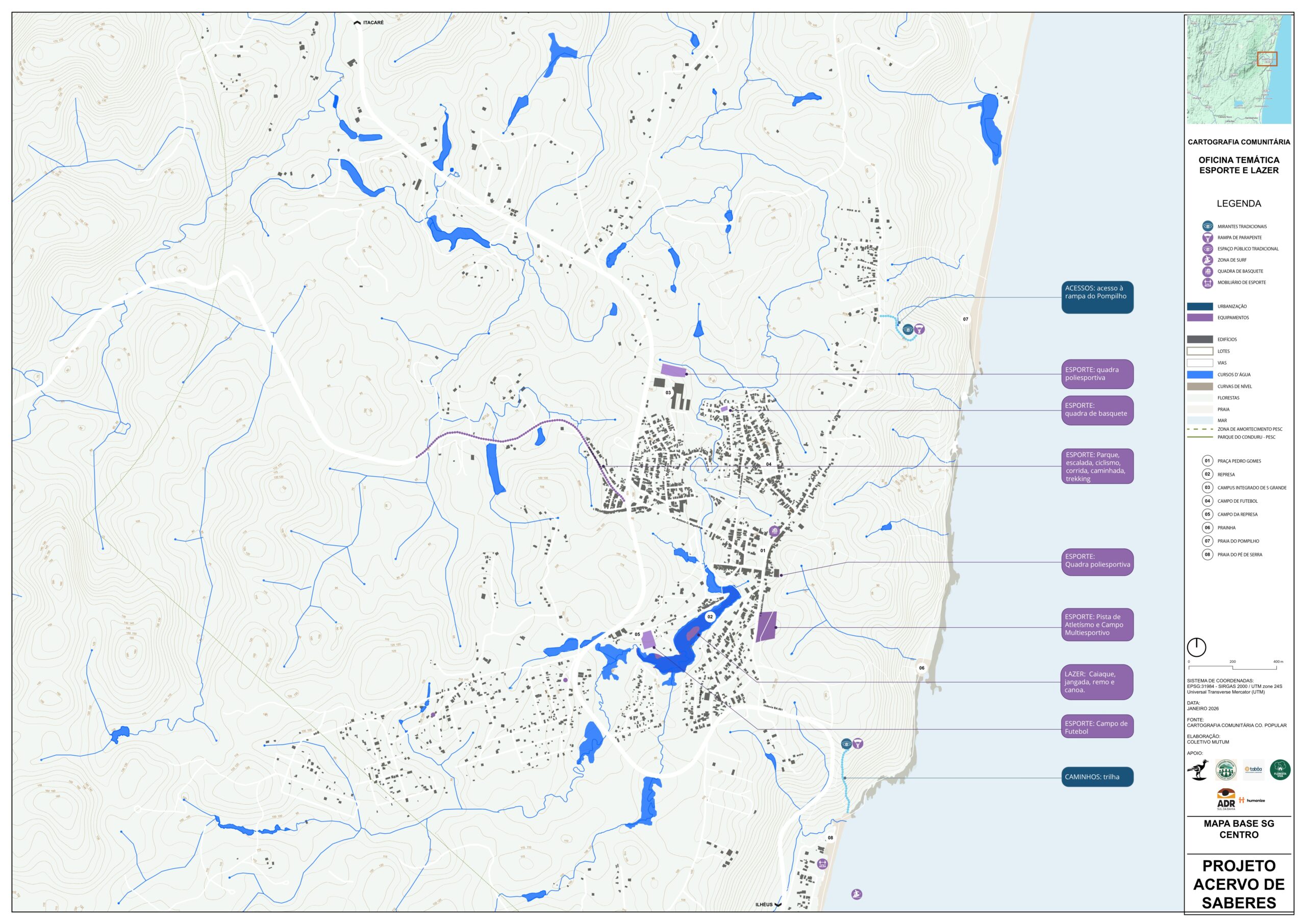 A escuta comunitária de Esporte e Lazer de Serra Grande aconteceu no dia 25 de Setembro de 2025, na Casa Azul e contou com 22 pessoas participantes, reunindo praticantes, representantes de associações e moradores com o objetivo de identificar as práticas esportivas realizadas no território, suas potencialidades, desafios e propostas de fortalecimento a serem incluídas no Plano Diretor.