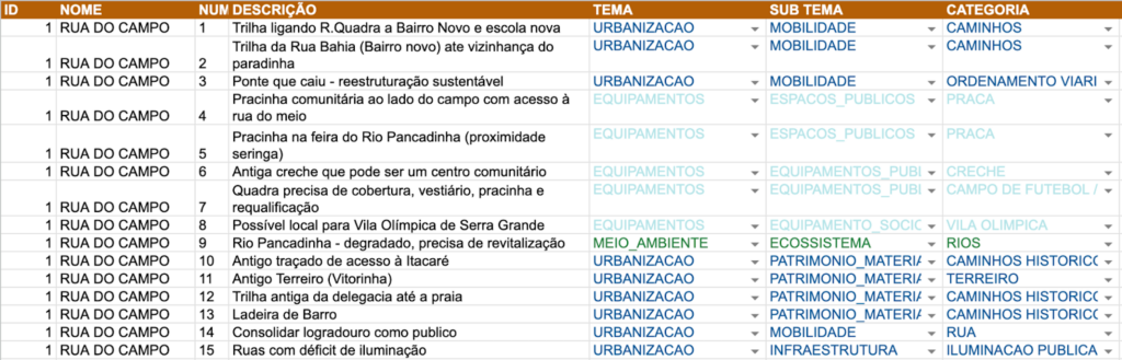 A comunidade sugeriu que os limites e nomes dos bairros sejam definidos com participação popular, respeitando a dimensão cultural e comunitária da territorialidade.