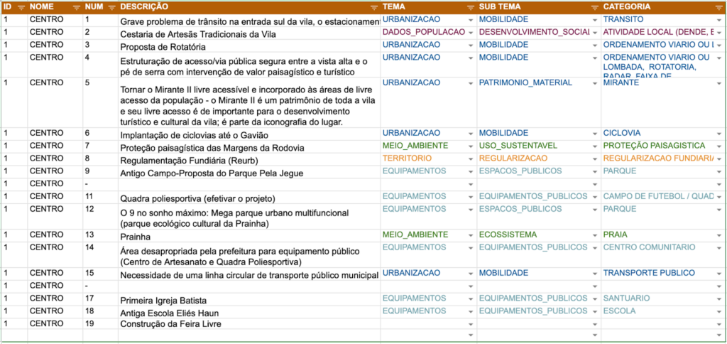 A escuta do Centro e Mirantes aconteceu na Praça Pedro Gomes, no dia 27 de Setembro e contou com a participação de 23 pessoas que fizeram um levantamento sobre a identidade territorial e apontaram no mapa problemas e necessidades de melhoria na localidade.