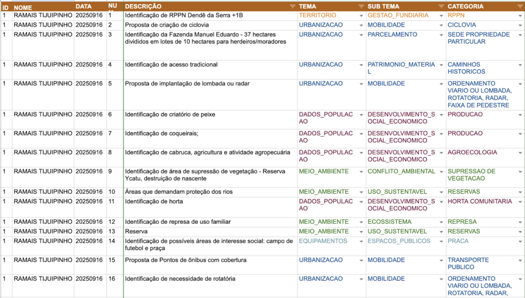 As propostas da comunidade apontam caminhos diretos para os instrumentos urbanísticos do Plano Diretor. A população defende:
