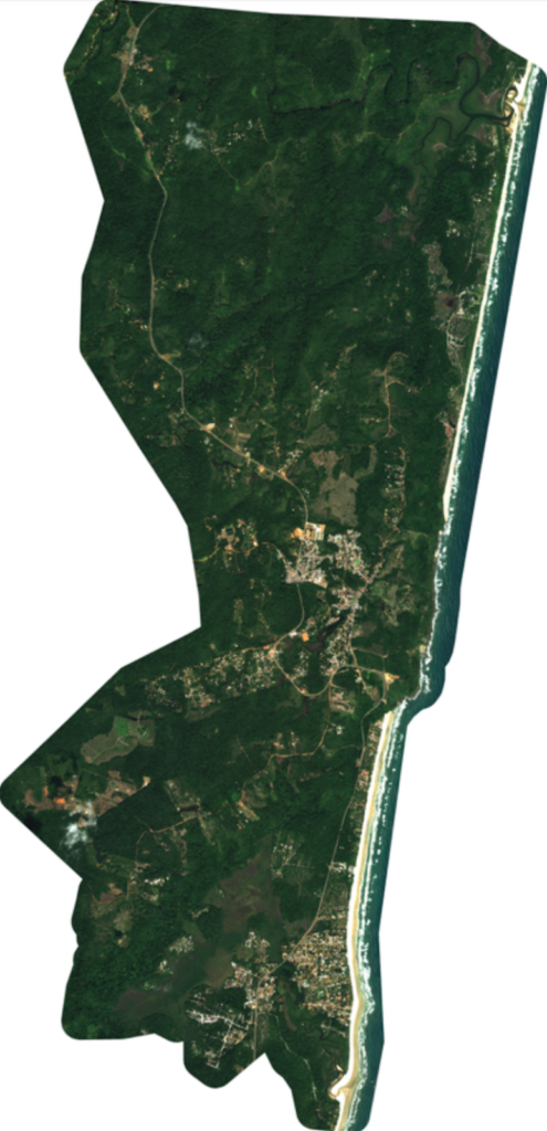 A área circunscrita do distrito ocorre entre quatro limites territoriais e administrativos bem definidos (Oceano Atlântico, limites municipais de Uruçuca a norte e a sul e o Perímetro do PESC), configurando assim, todo o “acervo” de terras para preservação e regeneração ambiental resguardando fauna e flora, para produção agrícola alimentar e para expansão da área urbana.